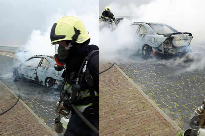 DEN OEVER – De brandweer van Den Oever werd dinsdagmiddag met spoed naar een autobrand op de afrit van de A7 geroepen. Daar aangekomen kwamen de vlammen al uit de auto en viel er niet veel meer te redden.