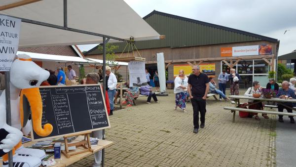 Na vorig jaar hadden we ons materiaal voor de stand weer flink weten uit te breiden. We beschikken nu over een prachtig spandoek, over een schoolbord en in de verkoop hadden we vele nestkasten en insectenhotels.