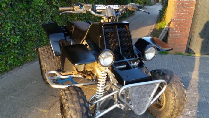 De handrem-hendel zit vast met een tie-rip en de voet-treeplankjes zaten er niet op. Kenteken: 8-KXG-98. De tuinpoort, die op slot zat, is voor de diefstal opengebroken en het opvallende voertuig is meegenomen. Het terugvinden van de quad wordt mogelijk beloond.